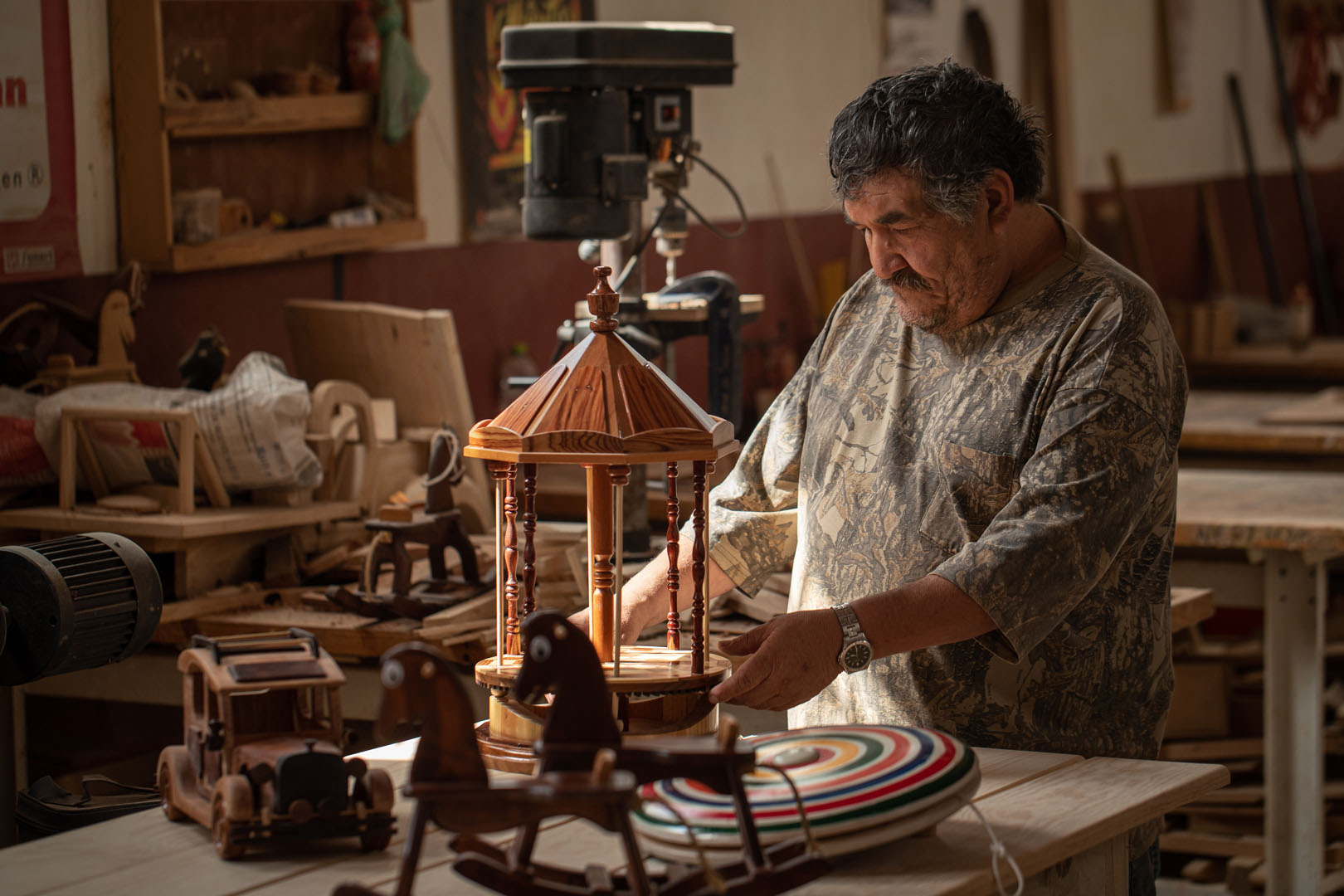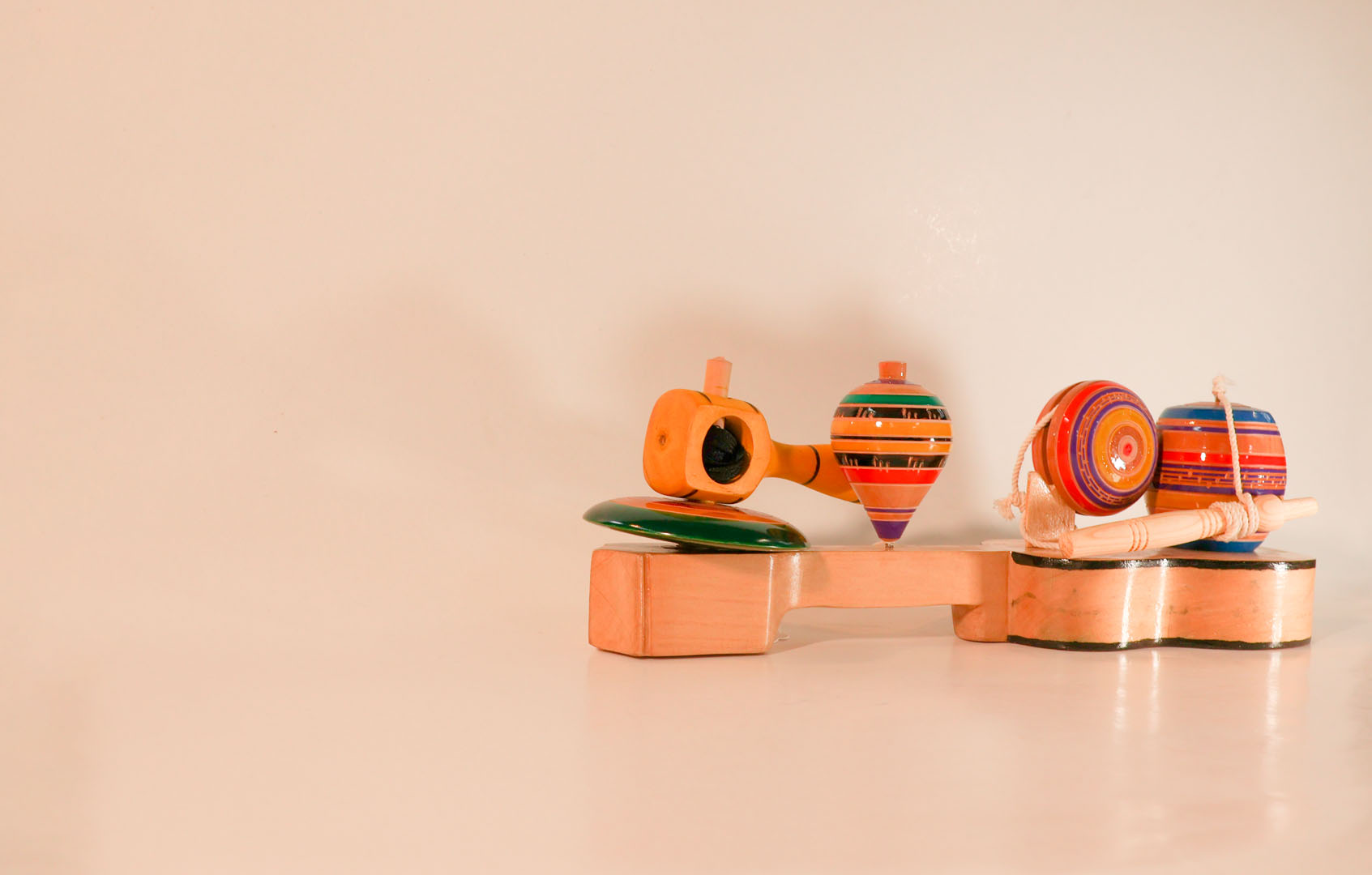 En Michoacán, la técnica artesanal de la madera torneada se ha perfeccionado, con artesanos involucrados en casi todo el proceso de producción y acabado. Los colores vibrantes de estos juguetes tradicionales invitan a «bailar» un trompo, deslizar un yoyo o encajar el balero, permitiendo a niños y adultos disfrutar e interactuar al darles movimiento.