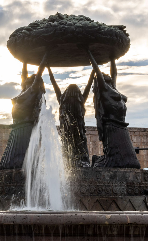 Considerada uno de los monumentos más representativos de la ciudad, la Fuente de Las Tarascas representa a tres mujeres purhépechas sosteniendo una batea repleta de los frutos de la región. Este emblemático símbolo de Morelia también marca el final del Acueducto y el inicio de la Calzada de Fray Antonio de San Miguel.