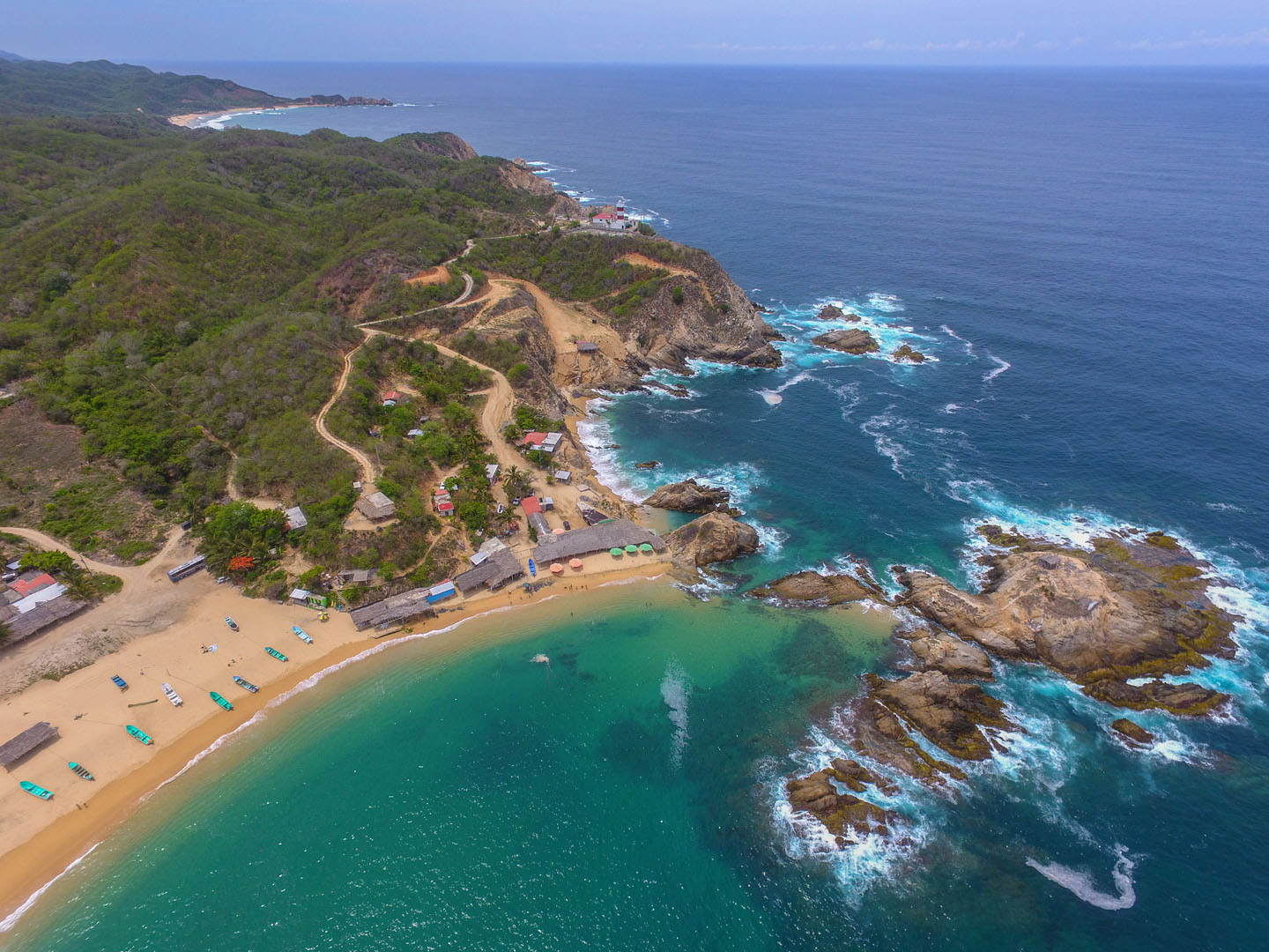 Faro de Bucerías se distingue por sus aguas de un azul turquesa vibrante y sus arenas blancas, creando un paisaje paradisíaco. Este rincón de la costa michoacana está adornado por un conjunto de islas rocosas, donde la claridad del agua lo convierte en un lugar ideal para practicar buceo, snorkel y natación, además de ofrecer la opción de acampar bajo el cielo estrellado.