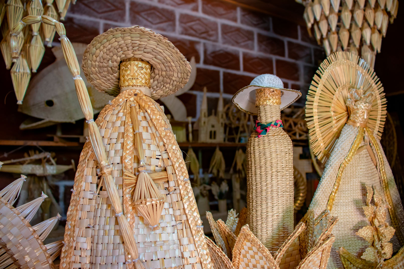 La hoja de maíz es quizá uno de los trabajos artesanales más recientes, con los cuales se crean coronas navideñas, nacimientos, ángeles, muñecas que visten trajes regionales y una gran variedad de flores.