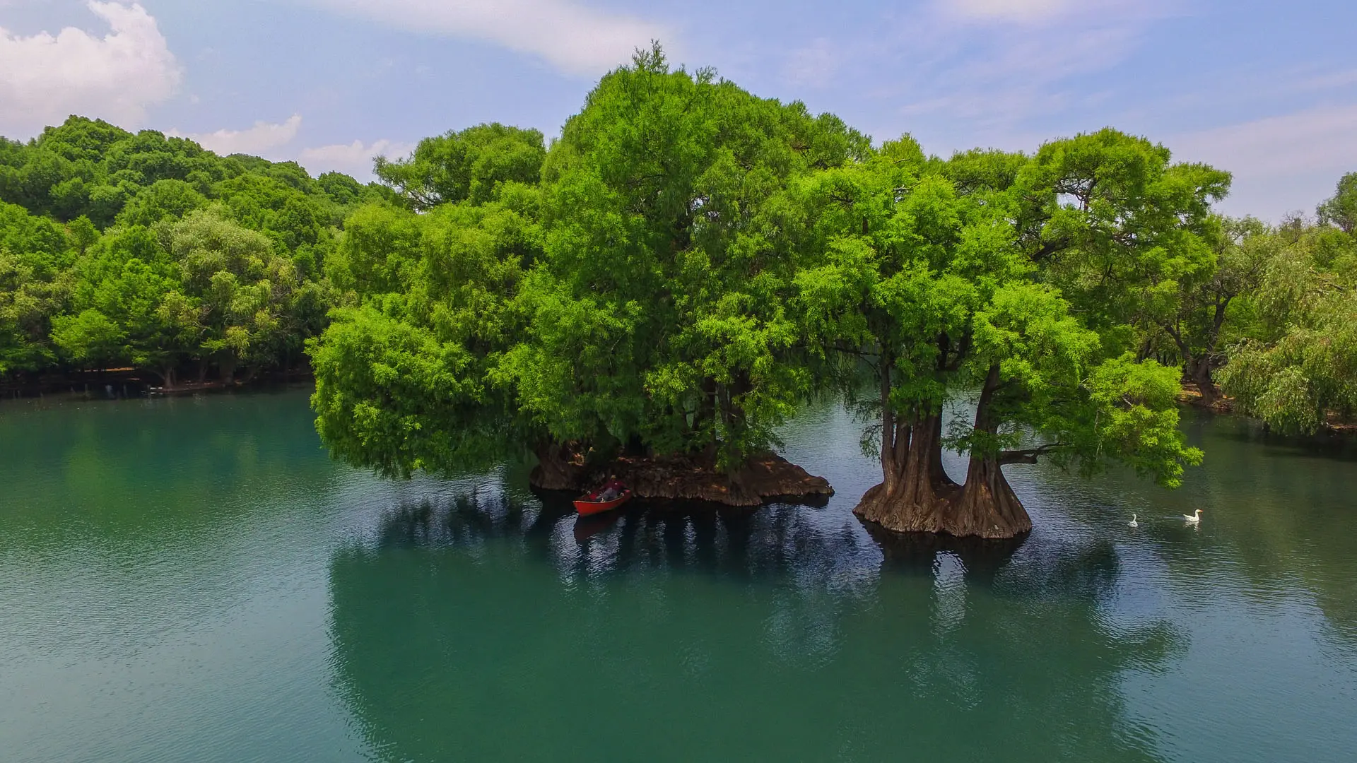 El Lago de Camécuaro, ubicado en el municipio de Tangancícuaro, es uno de los tesoros naturales más cautivadores de Michoacán. Este espejo de agua cristalina, rodeado por imponentes árboles centenarios cuyas raíces se entrelazan formando espectaculares figuras, parece salido de un cuento de hadas, convirtiéndose en un destino imprescindible para quienes visitan el estado.