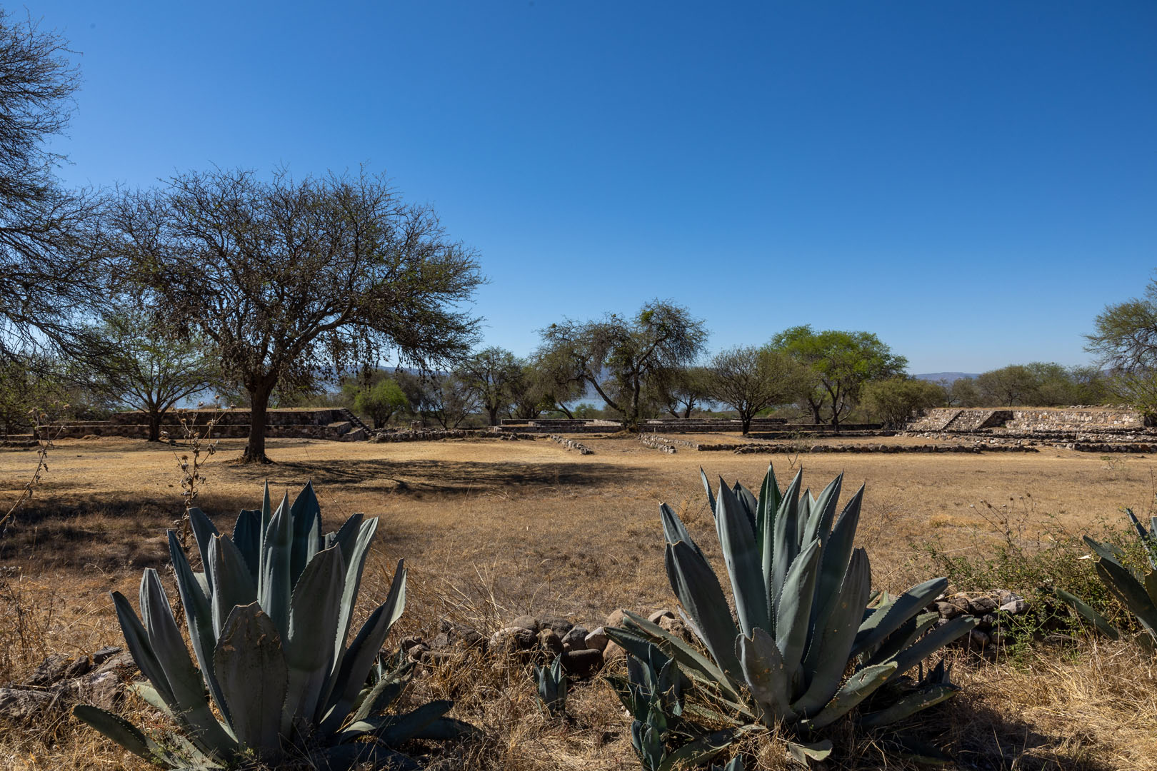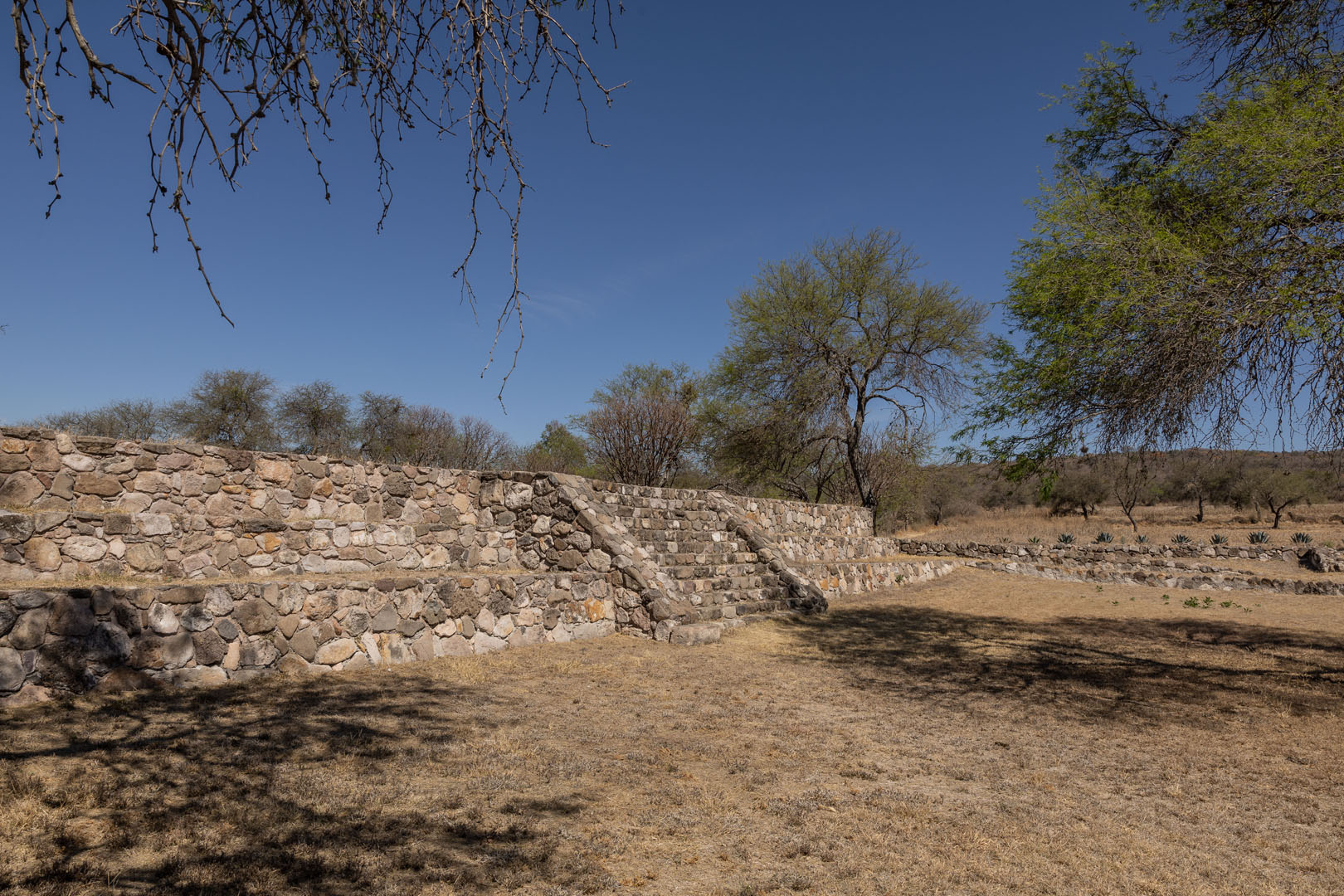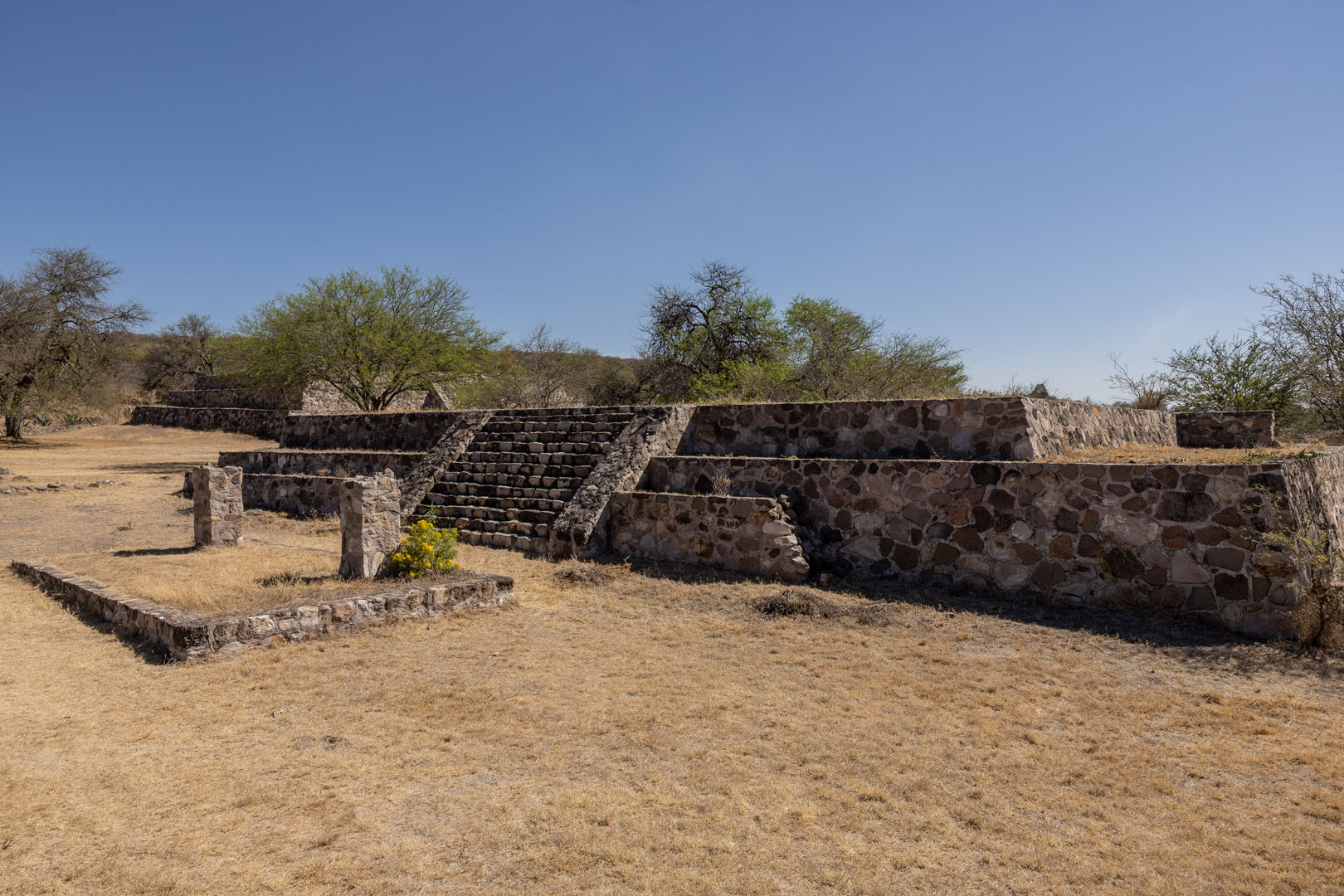 El sitio destaca por su arquitectura discreta, con plataformas de baja elevación construidas mediante núcleos de tierra y piedra. Los muros carecen de elementos decorativos, aunque en algunos casos se encuentran petrograbados adosados. Durante las exploraciones en el Montículo 3, se identificaron muros que simulan el estilo talud-tablero característico de Teotihuacán, aunque este es un ejemplo aislado dentro del sitio.