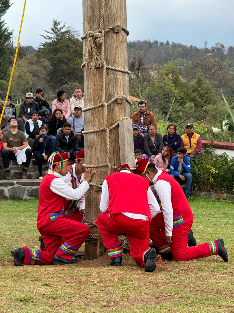 El ritual de los voladores no es solo una danza acrobática, sino un complejo conjunto de tradiciones y creencias profundamente arraigadas en la cosmovisión indígena. Este ritual incluye dos danzas previas: la «Danza del Perdón» y la «Danza del Permiso».
