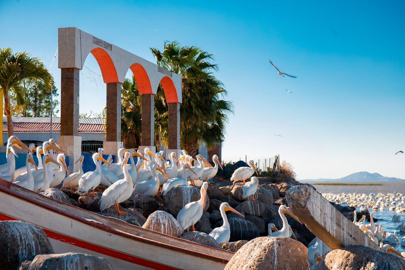 Admirez la migration des pélicans à Petatán: pendant l’hiver, le lac Chapala devient le lieu de résidence temporaire de millions de pélicans qui migrent depuis le nord. Ce spectacle naturel est une expérience unique pour les amoureux de la nature et les ornithologues. Depuis Zamora, vous pouvez organiser une excursion au lac pour assister à ce phénomène et profiter de la sérénité de l’une des plus grandes étendues d’eau du Mexique.