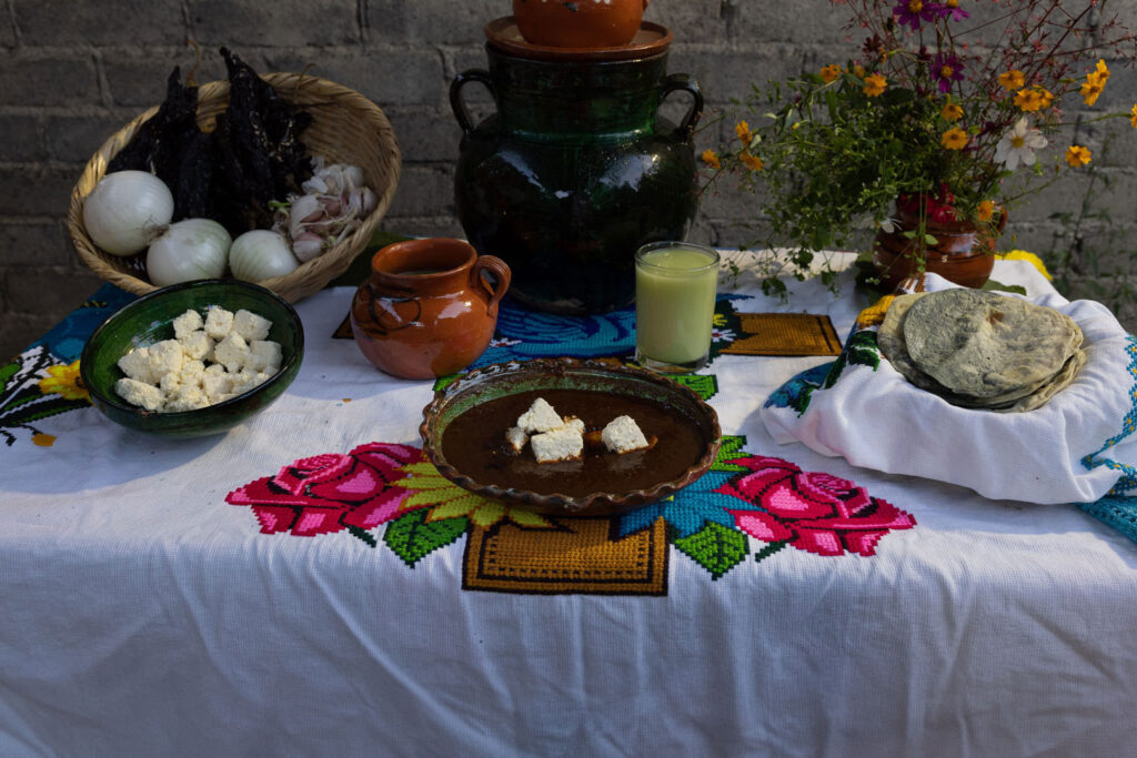 Además de crear sus propios platillos en la cocina de su pueblo natal, atiende por reservación y eventos a cualquier persona que tenga antojo de probar su delicioso mole con queso, sus famosas corundas azules rellenas de frijol, o los charalitos en salda.